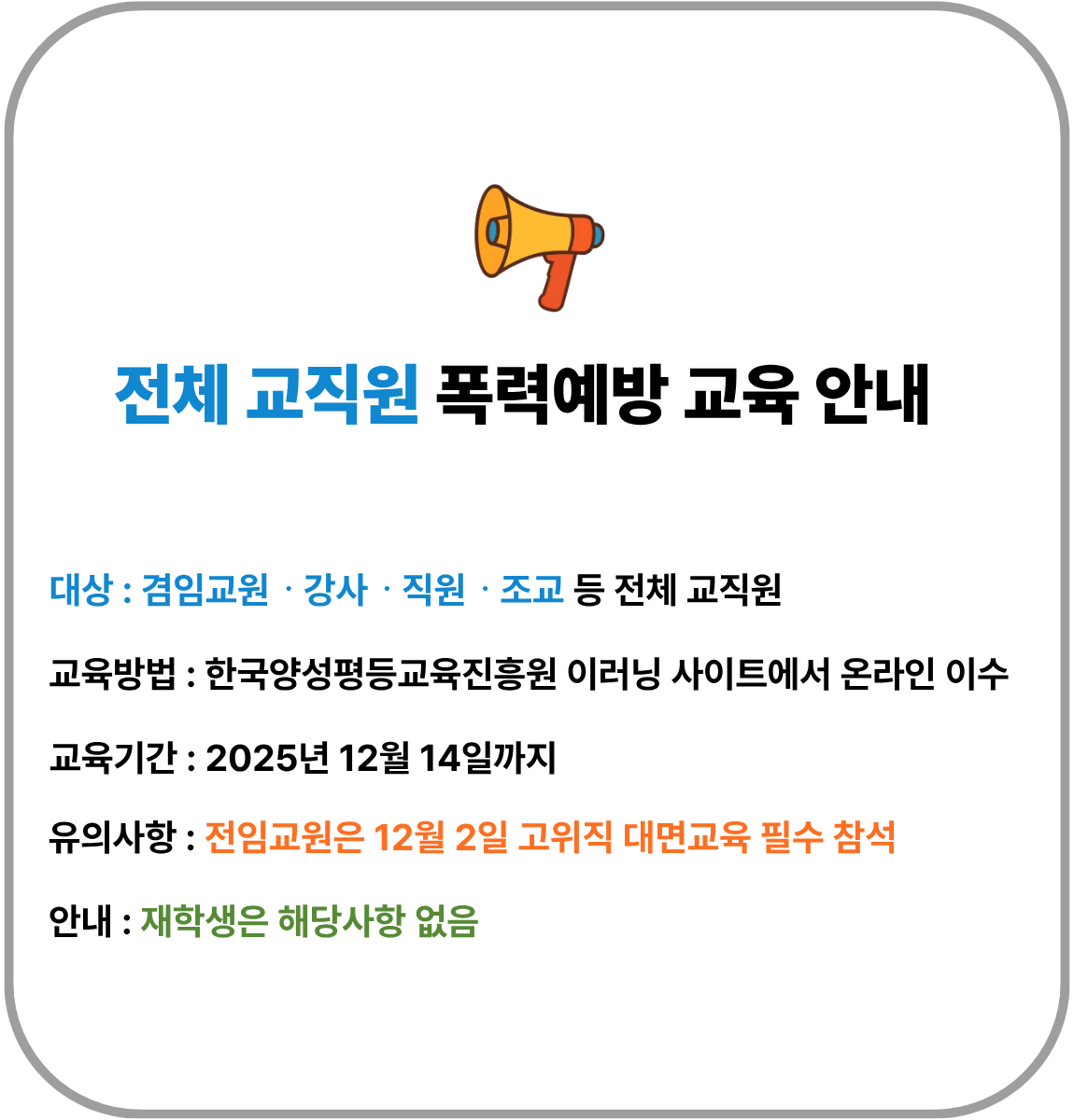 전체 교직원 폭력예방 교육 안내 [스크롤 하면 링크 있습니다!]